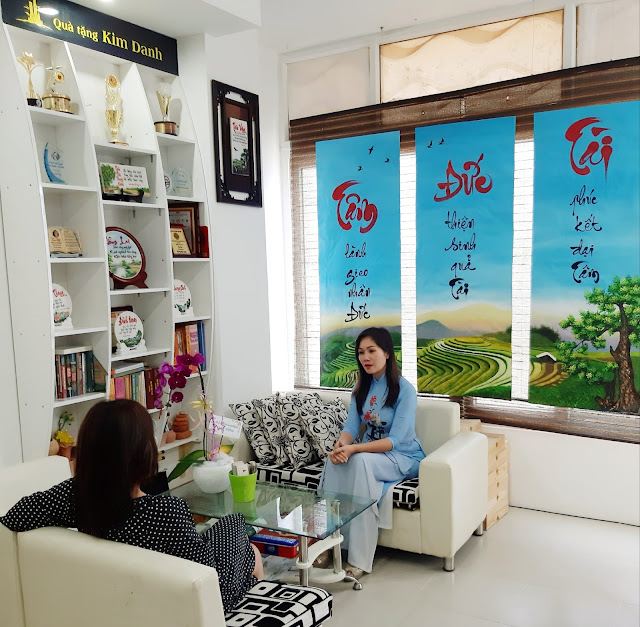 Khách hàng thường đến showroom Kim Danh để có thể tận mắt chiếm ngắm các dòng sản phẩm nghệ thuật. Một điểm đặc biệt của Kim Danh là “Sản phẩm thật nhìn đẹp lung linh và cảm xúc hơn so với hình ảnh”. Để quyết định chọn chất liệu, đặt hàng hoặc đơn giản chỉ đến để tìm hiểu và nhìn ngắm những sản phẩm vẽ tay ý nghĩa, đậm đà bản sắc dân tộc, nhiều khách hàng muốn đến tận mắt xem tranh